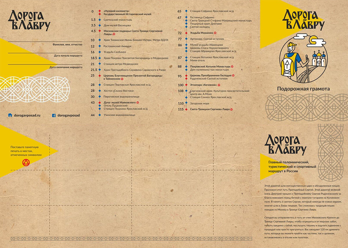 Интересно, что о прохождении маршрута можно получить официальный документ. Чтобы это сделать, нужно распечатать подорожную грамоту и ставить печати в специальных местах, которые отмечены на карте.