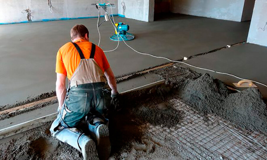 От тщательности подготовки во многом зависит конечный результат, поэтому к ней необходимо отнестись с полной ответственностью. Сначала основание зачищают от остатков предыдущей стяжки (если она есть). Это осуществляется при помощи шлифовальной машины с соответствующим абразивом. Все трещины, углубления и выбоины заделывают цементом или шпатлёвкой. Затем поверхность очищают от любого рода мусора.