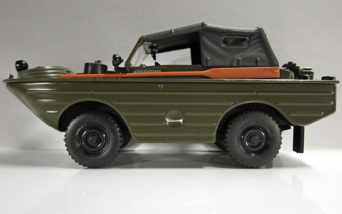 Всем доброго дня, хочу вам рассказать про вездеход амфибию газ -46, читайте до конца и узнаете всю информацию об этом чудо агрегате времен СССР. Это уникальный серийный автомобиль, который выпускался заводом ГАЗ в 1953-1958 годах. Вездеход выпускался на базе автомобиля ГАЗ 69 Конструкция кузова подразумевает легкое перемещение по суше и воде. Имеет водонепроницаемый корпус и гребной винт, для быстрого плавания. Привод на винт идёт с раздатки. Управление на воде осуществлялось судовым рулем, находящимся в струе воды от гребного винта. Корпус автомобиля разделен на отсеки нос, кормовой отсек и средний отсек. Привод Полный привод, колесная формула 4Х4 Двигатель А вот двигатель у ГАЗ -46 уже от "Победы" (газ-М20), это четырехцилиндровый бензиновый двигатель Объем 2111 см3 Мощность 55 л.с. Масса автомобиля 1270 кг, грузоподъемность 500 кг ширина, мм: 1750 длина, мм: 5070 Максимальная скорость 90 км/час. На воде 10 км,час. Салон не отличается изысками, все в рамках советского автом