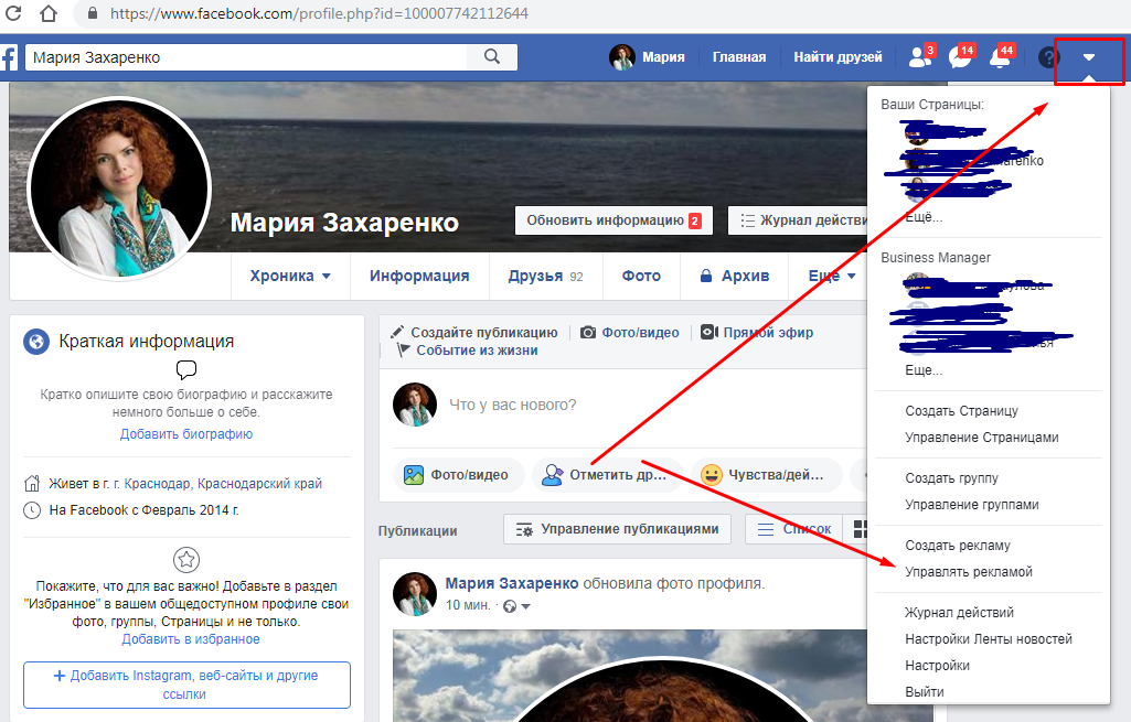1.Необходимо добавить в друзья человека, которого вы планируете пригласить в рекламный кабинет. Для этого в строку поиска введите его имя и фамилию, отправьте запрос в друзья. Чтобы это было быстрее, сообщите человеку о заявке. Если таких заявок много, то продублируйте имя, фамилию своей странички, особенно актуально если имя отличается от вашего настоящего имени. 2. Когда запрос будет одобрен, вам нужно зайти в рекламный аккаунт в меню настроек и отправить доступы таргетологу. Попасть в меню можно следуя по скринам или пути в тексте: - Открыть меню Facebook через треугольник справа вверху