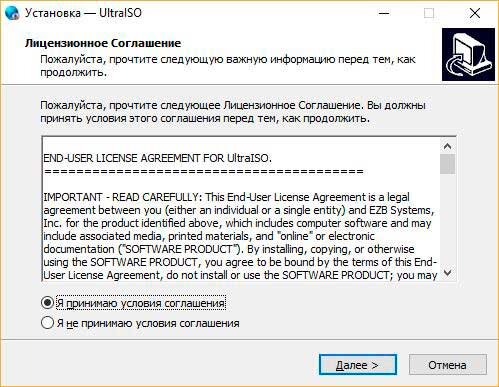 Данный архив с программой проверенный нами лично, а процесс установки отображен на скриншотах. Жмем Установить. Далее жмем Пробный период. Этого нам вполне должно хватить, и не требуется покупать полную версию. Но вы всегда можете поддержать авторов программы. Открывается основное окно программы UltraISO. Оно включает в себя условные три части. Нас интересует верхнее меню и п