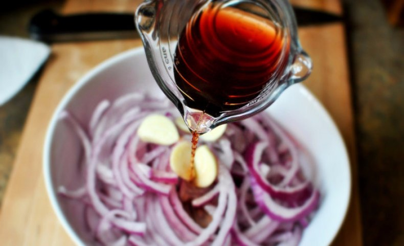 Маринад с винным уксусом – это идеальный вариант для твердого мяса, говядины или свинины. В этом рецепте маринада самую главную скрипку играет уксус, внимательно почитайте информацию на этикетке, в правильном уксусе только один ингредиент – перебродивший виноград, и больше никаких других отдушек, ароматизаторов и прочей химии, если такие имеются, то лучше взять яблочный уксус. Порций - на 2 кг мяса, Время приготовления - 10 мин (мариновка 2 часа). Ингредиенты: · Мясо (говядина, свинина) – 2 кг, · Уксус винный (6%) – 6 - 8 ст.л., · Корень петрушки – 1 шт., · Морковь (можно без нее) – 2 шт., · Лук репчатый (крупный) – 2 шт., · Чеснок – 5 зубков, · Гвоздика – 5 бутонов, · Мускатный орех молотый – 1/2 ч.л. · Кориандр молотый - 2 -3 ч.л., · Черный и красный молотый перец - по 1 ч.л., · Хмели-сунели (или Ваши любимые специи для мяса) - 2 ч.л. · Соль. Готовим маринад так: 1. Чистим лук, морковь и корень петрушки. Нарезаем петрушку с морковью кружочками, лук - кольцами, чеснок давим на прес