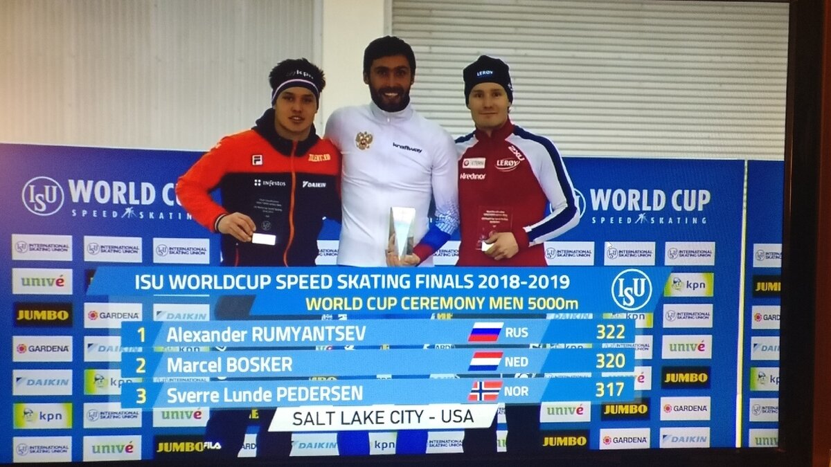 На финальном этапе Кубка мира по конькобежному спорту, который проходит в Солт-Лейк-Сити, архангельский конькобежец Александр Румянцев показал четвертое время на дистанции 5000 метров с личным рекордом — 6 минут 10,785 секунды. Этот результат позволил ему по итогам сезона в Кубке мира выиграть общий зачет на длинных дистанциях 5000 и 10 000 м.