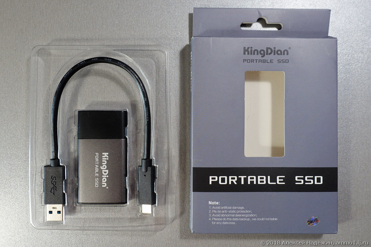 Год назад я задумался о внешнем накопителе SSD и обнаружил, что у китайского производителя SSD-дисков KingDian как раз вышел маленький внешний накопитель, 240 гигабайтной версией которого я и обзавёлся в начале 2018 года.