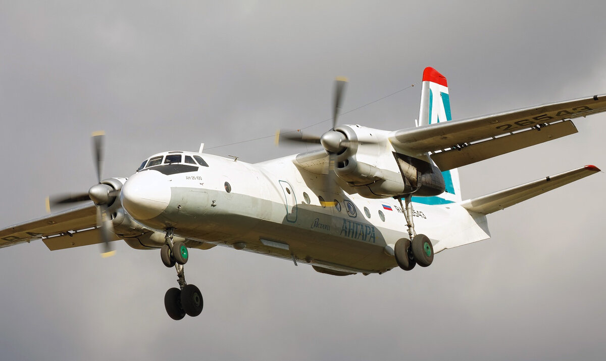 Загружаемся в самолёт. Это Ан-26-100, конвертированный в пассажирский из транспортника. У "Ангары" три таких борта, выпуска 1975-1979 годов. Однако винтаж и раритет!