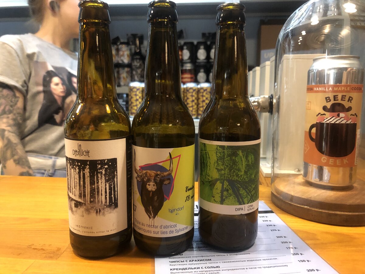 Дисклеймер: черезмерное употребление алкоголя вредит вашему здоровью. Получилось так, что французские дистрибьюторы заинтересовались российским крафтом и приехали подписать бумаги на поставку. А также заодно решили показать своё пиво в баре от «Бакунина» «Kiosk». Всего они привезли 6 сортов, но остановимся на самых интересных: фруктовом пиве «Rodeo», фермерском эле «Pas Du Coing», русском имперце «Insomnie» и эле «Dipa Citra». Первое, что вызвало интерес — то, как сварено фруктовое пиво. Своим вкусом «Rodeo» напоминает сухой сидр, но отличительной чертой будет то, что французские пивовары любят незаметный градус. Таким образом, лёгкое и полусладкое пиво с абрикосом обладает ещё и высоким градусом, который совсем не ощущается, пока его пьёшь. Французский стаут «Insomnie» можно сравнить с бакунинским «Dancer»: такой же кленовый сироп и кокос в составе, но совсем другие градусы и раскрытие вкуса. Пиво сразу же показывает всё, что имеет, без постепенного раскрытия вкуса. Градус стаута