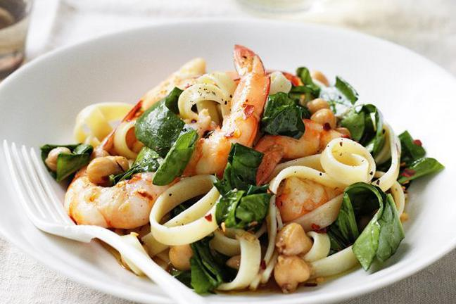 Восхитительная паста с креветками, шпинатом и соусом песто