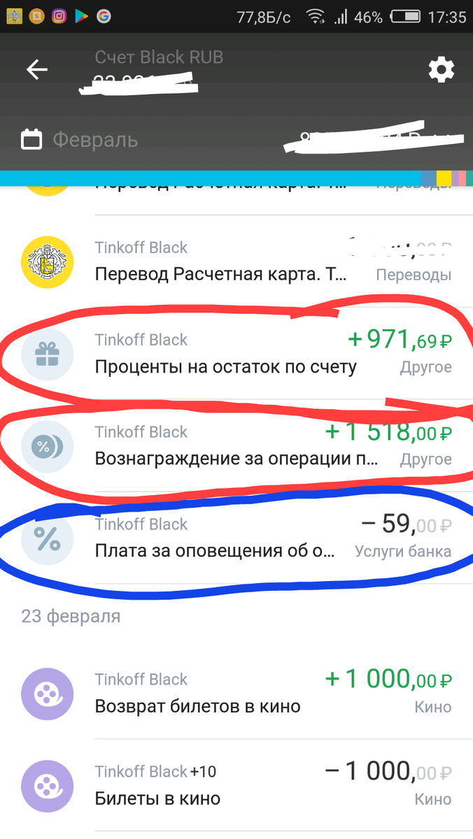 Каждый день кто-нибудь да спросит про мою карту. Хочу рассказать подробнее, т.к.есть нюансы, но если ты владеешь информацией, то вполне можешь рассчитывать на пассивный доход. Итак, у меня несколько карт. Расскажу пока про одну, хотя эффективность дает именно умелое использование нескольких карт, возможно даже, карт нескольких банков. Карта Тинькофф блек. Черная. Дебетовая. Если откроете по этой ссылке, у вас будет 3 месяца бесплатного обслуживания. И мне тоже что-то будет. Если вы переходите по ссылке, но потом закрываете и открываете снова, бонус не отслеживается. Мобильное информирование стоит 59 рублей в месяц. Обслуживание по ней стоит 99 рублей в месяц, но может быть и бесплатным. Бесплатное оно, если есть: Доход по карте: - начисление процента на остаток по счету - 6% - кешбек рутинный - 1% - повышенный кешбек - 5% - кешбек по спецпредложениям - до 50%. Вот здесь важно!!! Если вы считаете мелочью 10 рублей, вам мои советы ни к чему. В действительности доход может быть очен