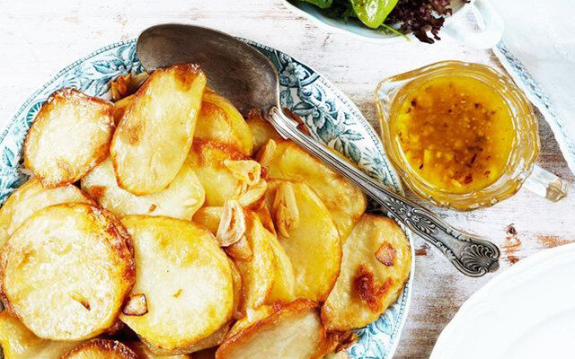 Жареный картофель с чесноком делает вкус ароматным и пикантным как гарнир к стейкам, курице-гриль и рыбе. Уникальная особенность этого чесночного картофеля заключается в том, что весь, неочищенный чеснок готовится вместе с картофелем, а затем очищается, измельчается и добавляется обратно в картофель. Небольшое количество лимонного сока вместе с петрушкой и луком завершают этот рецепт для аромата и текстуры. Они также универсальны, с множеством возможностей для вариаций.