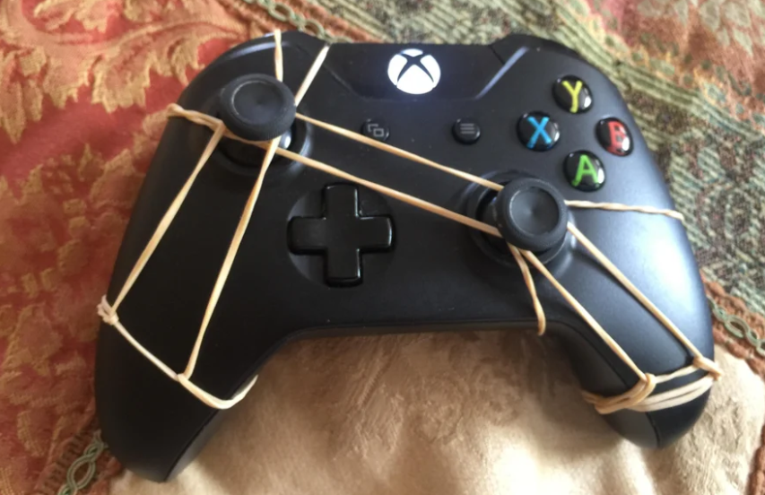 Сегодня у нас на повестке несколько интересных, полезных и даже забавных примеров, как геймеры, приложив немного усилий, смекалки и даже творчества, могут улучшить процесс геймплея или добавить немного эстетики своей берлоге. Те, кто много "гриндит" в играх и хотят сэкономить свое время - перевязывают резинками стики, чтобы делать минимальное количество усилий и получить максимум профита за один отрезок времени. Некоторые умельцы используют этот лайфхак, правда перевязав стики немного по-другому(см.фото), чтобы при движении больших пальцев не было сильного дрифта, тем самым делая движения максимально точными. Но, со стороны, это похоже на шибари, только вместо человека - контроллер. Для тех, кто играет в PUBG Mobile или Fortnite на смартфонах, будет наверняка интересно взглянуть. Один умелец с YouTube придумал как сделать самые настоящие триггеры для смартфона( аналог L2+R2 на PS4) с помощью... фольгированной обертки от жвачки... Для этого понадобится обертка от жевательной пластинки а
