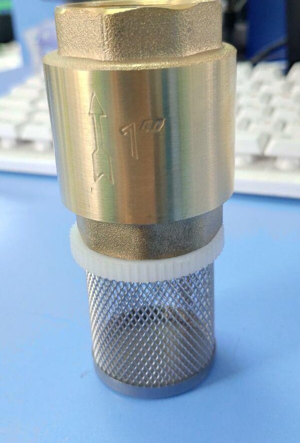 *Обратный клапан, нужен для того что бы насос постоянно был под давлением, если его не устанавливать насосная станция все что накачает скинет обратно в скважину.Самый лучший вариант установки это опустить его с трубой в скважину что бы на него было давление. *Фильтр сетчатый, устанавливается вместе с обратным клапаном, предотвращает поп