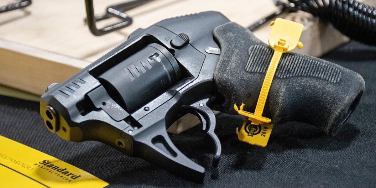 Итак, в Нюрнберге на днях завершилась выставка IWA Outdoors Classics 2019, а значит - вновь появился свежий материал для коллекции необычного оружия. Револьвер S333 от Standard Manufacturing - это весьма необычная "мелкашка" под калибр .22WMR, его создатели решили скомпенсировать малую останавливающую способность патрона просто и брутально: револьвер получил два ствола и возможность одновременной стрельбы из обоих. Так как сдвоенный курок скрыт внутри рамки, ударно-спусковой механизм револьвера работает только в режиме двойного действия. При этом спусковой крючок, рассчитанный сразу на два пальца и оборудованный встроенным автоматическим предохранителем (хотя зачем он нужен револьверу двойного действия, кроме соответствия требованиям закона?), проворачивает барабан за одно нажатие на две каморы, стреляют оба ствола. Таким образом, владелец может произвести четыре "дуплета" из восьмизарядного барабана Рамка револьвера благодаря использованию сравнительно маломощных патронов изготовлена