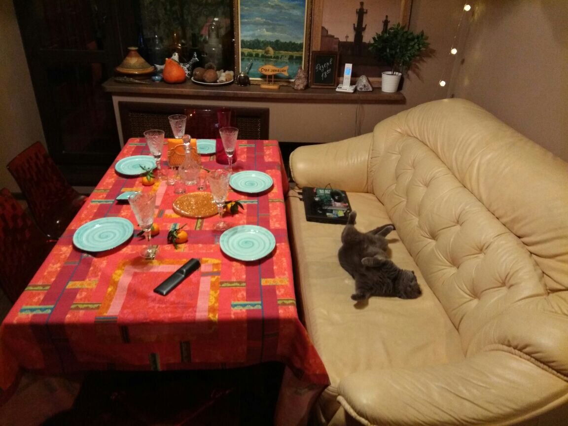 Нэко умеренно ленивый котей. И очень умный. Действительно, зачем лишние движения? Лежа на кухне, контролировал обстановку, учуял запах мяса - хоп, пошёл!