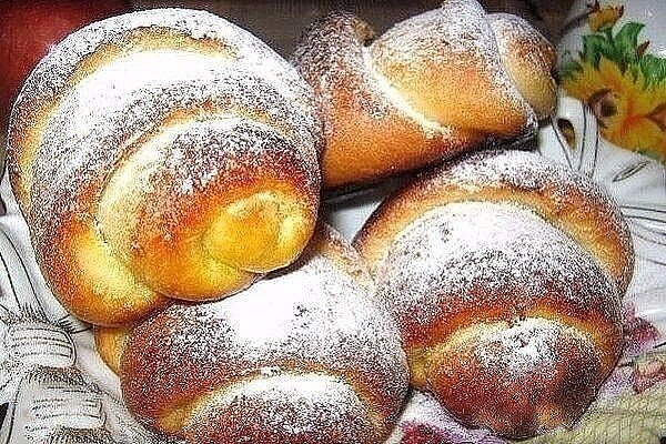 Аромат от этих плюшек на весь наш дом! Очень вкусные плюшки с сахаром из дрожжевого сдобного теста. С чаем улетают очень быстро! Обязательно берите рецепт на заметку! Какие ингредиенты нужны для плюшек: дрожжи сухие - 1 чайная ложка мука - 500 гр яйца - 1 шт вода - 100мл молоко - 100 мл сахар - 3 столовые ложки растительное масло - 100 мл ванильный сахар щепотка соли сахарная пудра для посыпки Смешиваем молоко, воду, масло растительное, яйца, щепотку соли и сахар. Размешиваем до однородности. Затем добавляем ванильный сахар и дрожжи. Оставляем эту смесь минут на 15. Потом добавляем муку и замешиваем тесто. Оставляем его в теплом месте на 1-1,5 часа. Один-два раза обмять. Подошедшее тесто разделяем на несколько частей - размером с яйцо. Раскатываем в тонкую лепешку, смазываем растительным маслом и посыпаем сахаром. Теперь ножом надрезаем лепешку и сворачиваем рулетиком. Вот так, как на фото. Заворачивать плюшки можно и любым другим способом, который знаете. Плюшки выкладываем на проти