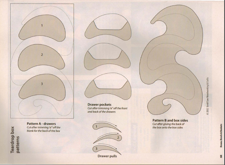Всем привет! Сегодня расскажу о небольшой шкатулке, похожей на маленький комод, которую я изготовил из обрезка дубовой доски. В народе такие изделия называют bandsaw box, так как изготавливают их чаще всего с помощью ленточной пилы. Я же в процессе изготовления использовал лобзиковый станок Корвет-88. Пилить лобзиком дуб толщиной 40 мм то ещё удовольствие, но деваться было и я решил идти до конца. Шаблон шкатулки был найден мной в одном из западных журналов по выпиливанию. На первом этапе от заготовки отрезается задняя часть толщиной порядка 4 мм. Затем, на лобзиковом станке выпиливаются ящички, от которых на следующем этапе также отпиливается задняя и передняя части. После того, как все детали готовы, к ящикам приклеиваются передняя и задняя стенки. Корпус и будущие ящики выглядят так: Приклеиваю заднюю стенку к корпусу после того, как всё выпилил: Шкатулка и ящички после пропитки льняным маслом. Ручки из берёзы. В каждый ящик поместится колечко или небольшие серьги. Вот так кусок ст