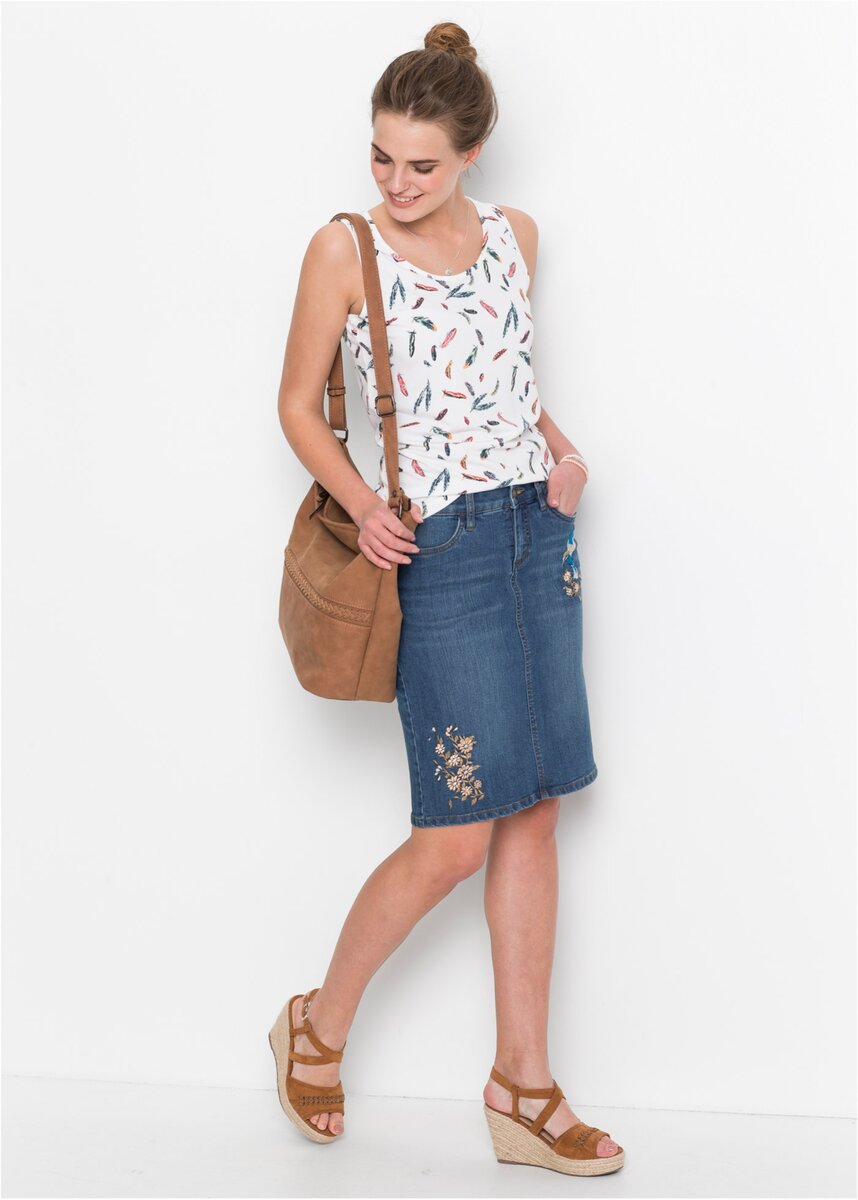 Люблю винтажные вещи! Узкая джинсовая юбка чуть ниже колен – «писк» моды молодости моей мамы. Мода возвращается, и у нас есть возможность почувствовать себя девушкой девяностых вроде Рэйчел из "Друзей". Давно хотела купить себе что-то подобное. Но, на мою чуть полноватую фигуру, это сделать немного проблематично. Хочется, чтобы и качество было отличное, и цена приемлемая, и дизайн пришелся по вкусу. Обычно я очень боюсь заказывать одежду из интернета. Примерить нельзя, неизвестно, можно ли будет вернуть вещь, если тебе она не подойдет. Но в этот раз решила рискнуть и заказать с Bonprix приглянувшийся мне вариант. Юбка пришла через три недели, с замиранием сердца я достала вещь из упаковки, оценила критическим взглядом, примерила и… осталась довольна! То, что мне было нужно и размер подошел. Но учтите, эта вещь не для худышек! Юбка из плотной, но в тоже время растягивающейся, качественной джинсовой ткани. Я думаю, можно брать на размер меньше. После стирки не села, цвет остался таким