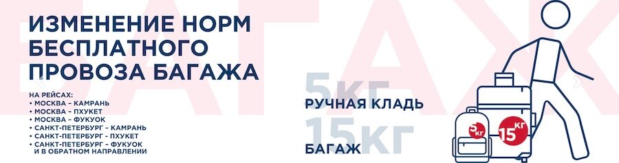 У всех авиакомпаний есть исключения и особенности перевозки багажа. Например, на рейсах авиакомпании Royal Flight есть направления, где к перевозке разрешен стандартный багаж весом до 15 кг, а ручная кладь - всего 5 кг. такие же ограничения есть у авиакомпании Азур Эйр: из Москвы и Санкт-Петербурга в Нячанг, Фукуок и Пхукет действует норма 15+5. В связи с этим, мы рекомендуем уточнять до покупки авиабилетов вес багажа, включенного в стоимость на чартерном рейсе.