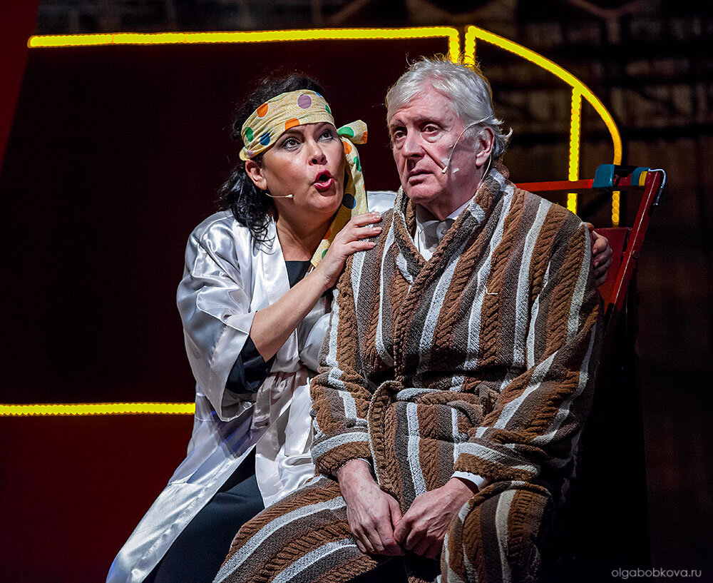 на спектакль с таким названием ходила я в еврейский театр "Шалом". Если быть точнее, сам театр позиционирует действо, как мюзикл. Без зажигательных танцев (ух, ноги рвались в пляс даже у самых серьезных зрителей) не обошлось, но обо всем по порядку... Итак...Для кого спектакль? Для всех любителей хорошего, легкого и, как бы странно это не звучало, но смешного юмора. Не пошлого, от которого все уже порядком устали, а доброго. Полный зал плакавших от смеха людей врятли ошибается. Было так трогательно наблюдать за зрителями в зале, которые сначала сдерживали смех изо всех сил и хихикали в "кулачок", но... мало по малу зал расслабился и дружно "покатился со смеху"... Признаюсь честно, слово "мюзикл", из-за своей популярности, меня стало в последнее время настораживать. Что же скрывается под ним в этот раз? Чудеснейший музыкальный спектакль, доверху наполненный искрометным юмором с философскими нотками! Эдакий коктейль, приготовленный так, что в антракте ты вздыхаешь: "Ну