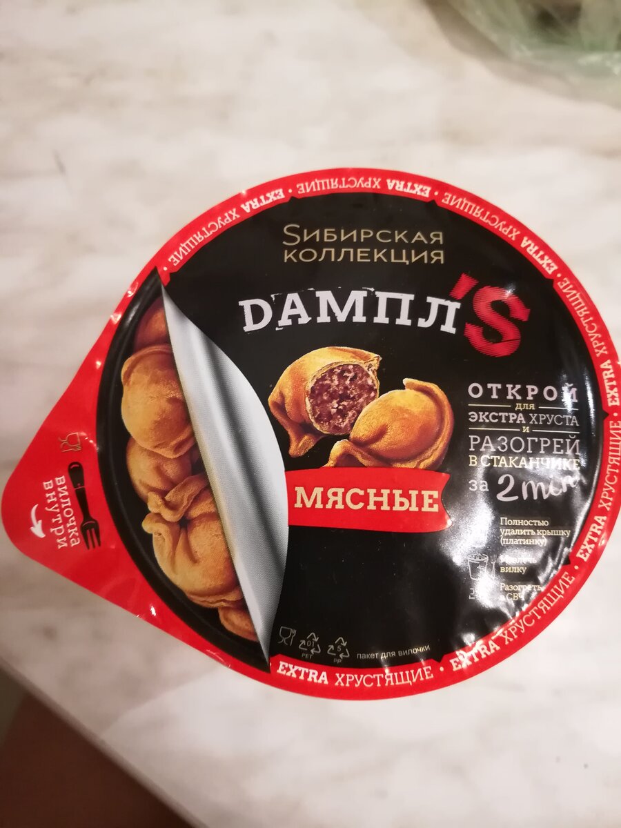 Всем привет! Я думаю вы со мной согласитесь, что всегда интересно попробовать что-то новое. Особенно, когда это новое - вкусное. Сейчас расскажу, что из новых продуктов на прилавке магазина покупать точно не стоит! Речь пойдет о полуфабрикате DамплS от Sибирской Коллекции. Под этим странным и непонятным названием скрываются всего навсего жареные пельмени. Внешний вид: Говорят, что реклама двигатель прогресса! Это полная правда. Пельмени упакованы в красивые, стильные стаканчики. Не увидеть их в морозильной камере супермаркета просто невозможно. Они явно выделяются на фоне желтых коробочек со всякими "Наггетсами". Судя по фото на стаканчике, данный продукт предназначен для ультрамодной, стильной, сверх занятой молодежи. Мда... на разработку упаковки производитель видимо потратил все силы и средства. На содержимое стаканчика не хватило ни того, ни другого. Но об этом позже. Состав: фарш - свинина, мясо кур, говядина, лук репчатый, сливки питьевые, соль, перец черный молотый. тесто