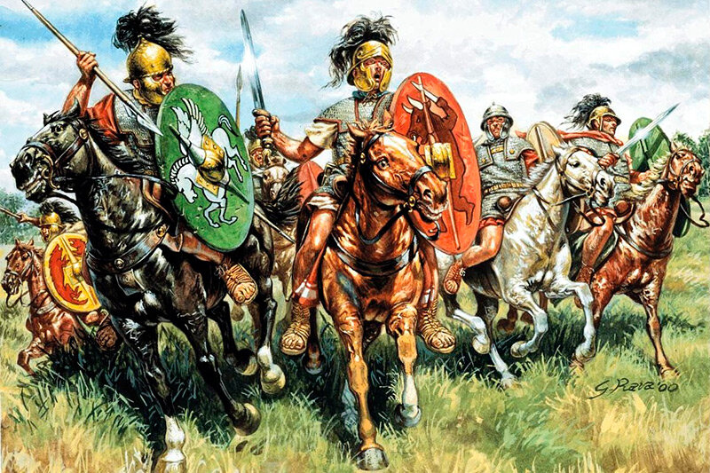 В римской армии кавалерия превратилась в самостоятельный род войск уже в середине III века. В позднеримскую эпоху существовало несколько типов кавалерийских подразделений: turmae, alae, vexillationes, scholae, cunei и equites. В чём было различие между этими отрядами, в точности неизвестно. В соответствии с возложенными на них тактическими задачами кавалерийские отряды делились на лёгкие, тяжёлые и эскадроны панцирных всадников, образовывавших сверхтяжёлую кавалерию. Значение лёгкой кавалерии в позднеримской армии было чрезвычайно велико. Уже с конца II века в составе действующих римских армий постоянно находились мавританские всадники (Mauri) В III столетии они служили как в регулярных, так и нерегулярных вспомогательных войсках. В IV – V веках термин Mauri уже утратил своё этническое значение использовался для определённого типа эскадронов. Особенно распространёнными стали эскадроны конных лучников. В представлении римского военного историка и теоретика Вегеция (кон. IV – нач. V в.