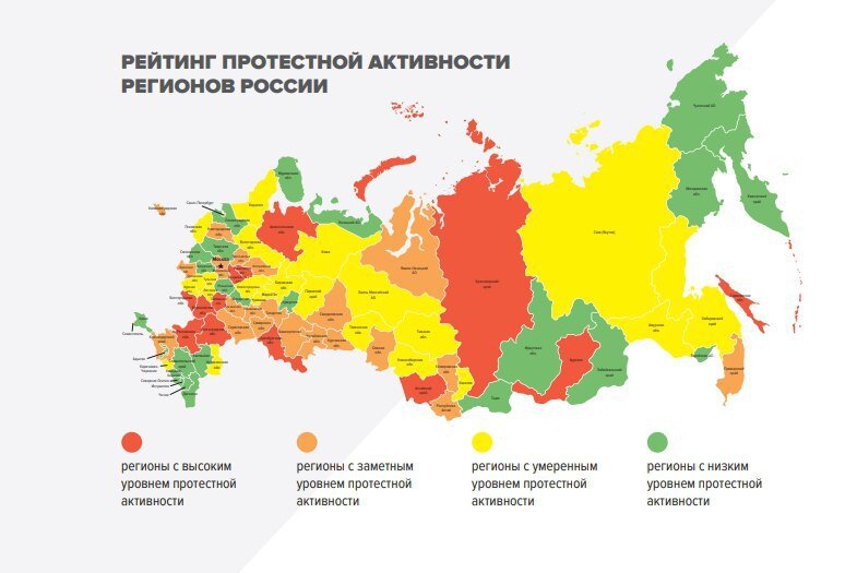В лидерах среди регионов с высокими протестным настроениями – Волгоградская и Архангельская области, а также Москва.