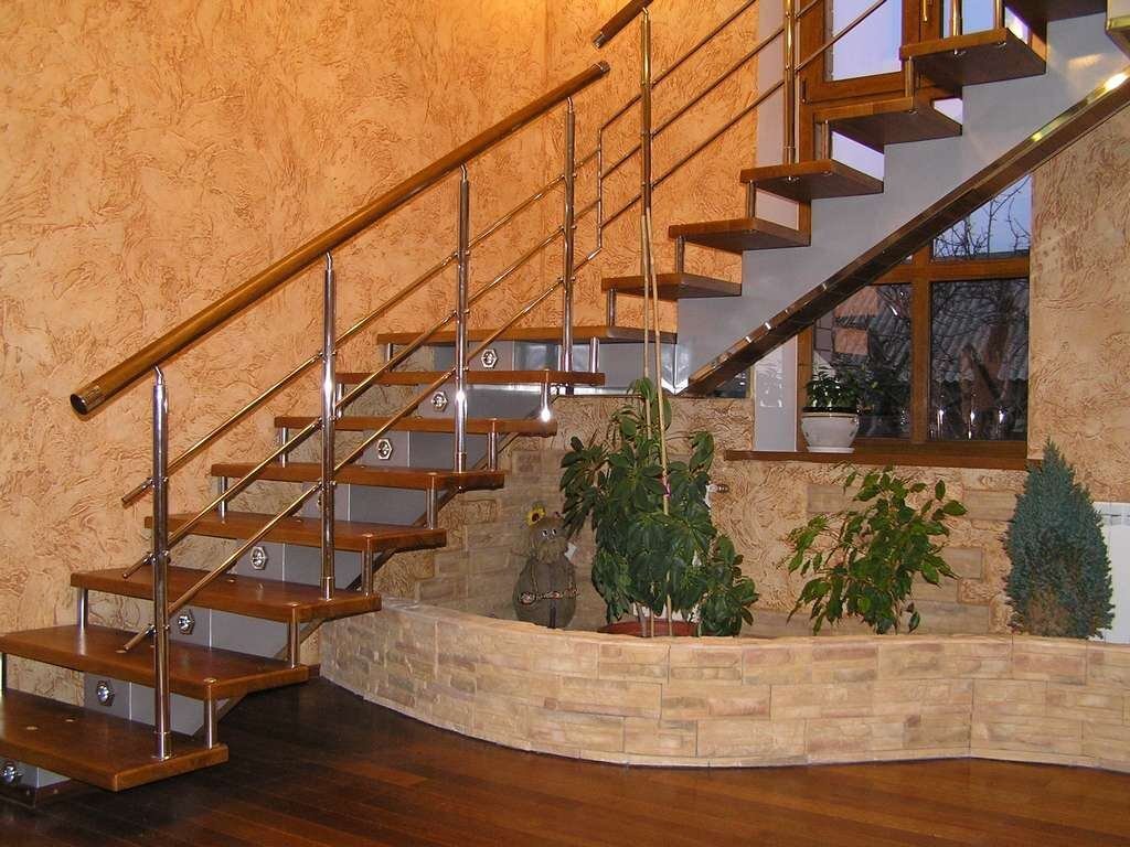 Лестницы данной конструкции состоят из ступеней поручней и собственно самих косоуров. Это очень надежный тип крепления, и если вы предпочита