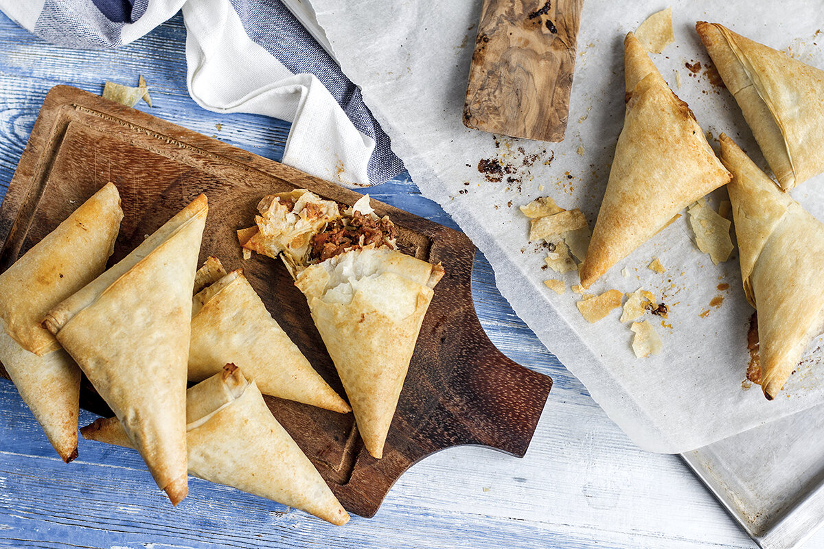 Фило — это такое тонкое, почти невесомое тесто. Делается оно с минимальным добавлением воды и жиров. Без яиц. Соединенные вместе листы этого теста дают эффект, похожий на эффект французского слоеного теста, но более легкий. А в качестве начинки используются грибы, овощи, ягоды - все, что душе угодно.