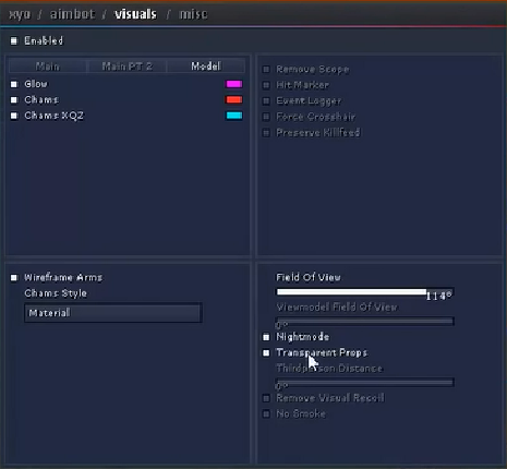 Чит имеет очень хороший Aim с хорошими настройками и всё что к нему прелогается, также не плохие Visualsнастройки.
