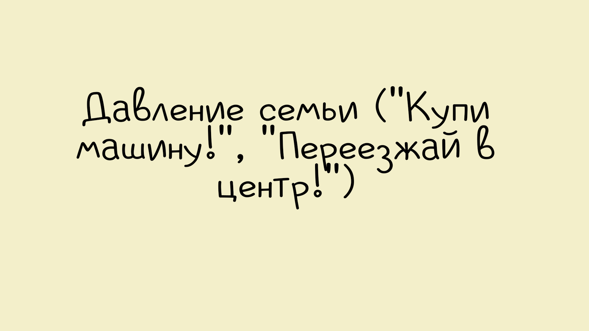 Давление семьи ("Купи машину!", "Переезжай в центр!")
