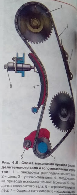 Ролики и оси роликов цепи ГРМ со временем изнашиваются и цепь удлиняется. Кроме того, изнашиваются зубья звездочек и рабочая поверхность башмака натяжителя. Вследствие чего натяжение цепи ослабляется, изменяются фазы газораспределения и зажигания - работа двигателя ухудшается, повышается его шумность. При значительном растяжении цепь может перескочить, что приводит к загибанию клапанов и поломке двигателя. Основным признаком ослабления цепи является характерный звонкий дребезжащий звук в передней части двигателя, появляющийся при резком увеличении-уменьшении оборотов. При значительном растяжении звук переходит в постоянный глухой брякающий. Поэтому периодически необходимо восстанавливать натяжение цепи, заводом рекомендовано проводить регулировку каждые 10 тыс. км пробега. Для этого в конструкции двигателя предусмотрен полуавтоматический плунжерный натяжитель. Натяжение цепи может быть произведено как при снятой клапанной крышке, так и без ее снятия. Первый способ более удобен, так ка