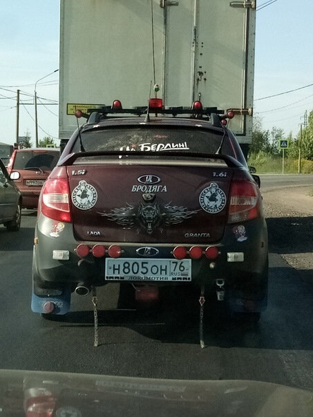 В сегодняшнем выпуске нелепого тюнинга вы увидите самостоятельный рестайлинг W140 до W220, "восьмерку" с мордой страшного насекомого, забавную "четырнадцатую" из Москвы с "позолоченными" бортами и многое другое. Не забывайте также посмотреть предыдущую часть. Если составить рейтинг самых популярных слов, которые наклеивают автовладельцы на свои автомобили, то в топе определенно будут "На Берлин" и "Бродяга". На эта Лада Гранта получила гораздо больше: всевозможные катафоты, лампочки и даже наклейку с головой льва. Узнали "восьмерку" в этом обличье? Кто-то очень сильно постарался, чтобы полностью изменить внешний вид этого популярного в нашей стране хэтчбека. Вот только автомобиль теперь похож на страшного насекомого с щупальцами на голове. Владелец старенького пикапа Chevrolet почему-то решил, что ему не нужен кузов: он оставил от него только задний борт с фарами. В дополнение к этой операции, пикап получил очень странное цветовое решение с покрашенными белой краской шинами, а задние б