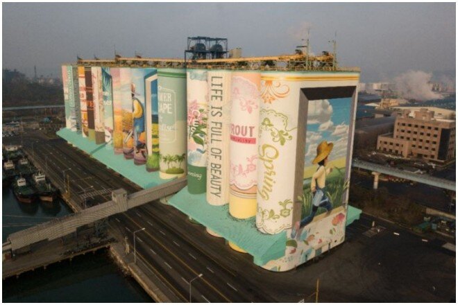 Старые зернохранилища получили новый поводок для жизни после того, как они были превращены в самую большую в мире фреску. Книга рекордов Гиннеса признала эту фреску книжной полки самой большой в мире, обойдя проект Pueblo Levee в Пуэбло. Фреска с книжной полкой называется «Путешествие во взрослую жизнь» и представляет собой совместную работу более 20 художников в Инчхоне.