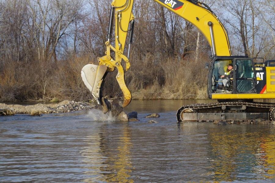 Позднее начало проектов по управлению наводнениями на реке Бойсе в Айдахо заставило подрядчиков поторопиться, чтобы максимально использовать свое время до окончания короткого окна строительного сезона. Работа обычно начинается в январе, но была отложена до февраля этого года из-за сильного снегопада в горах реки Бойсе и обширного процесса выдачи разрешений. Работа была завершена в первую неделю марта. "Мы работаем так быстро, как только можем, за короткий промежуток времени, когда маловодные условия позволяют нам сделать эти ремонтные работы на берегу реки",-сказал Майк Диммик, окружной менеджер района наводнения № 10. "Мы просим общественность ответственно относиться к любым знакам закрытия, которые мы ставим по соображениям безопасности, потому что тяжелая техника будет работать в этом районе. Время имеет значение." Во время зимнего / весеннего наводнения 2017 года река Бойсе находилась в стадии паводка более 100 дней, сказал представитель района Стив Штюбнер. "Сильная гидравлик