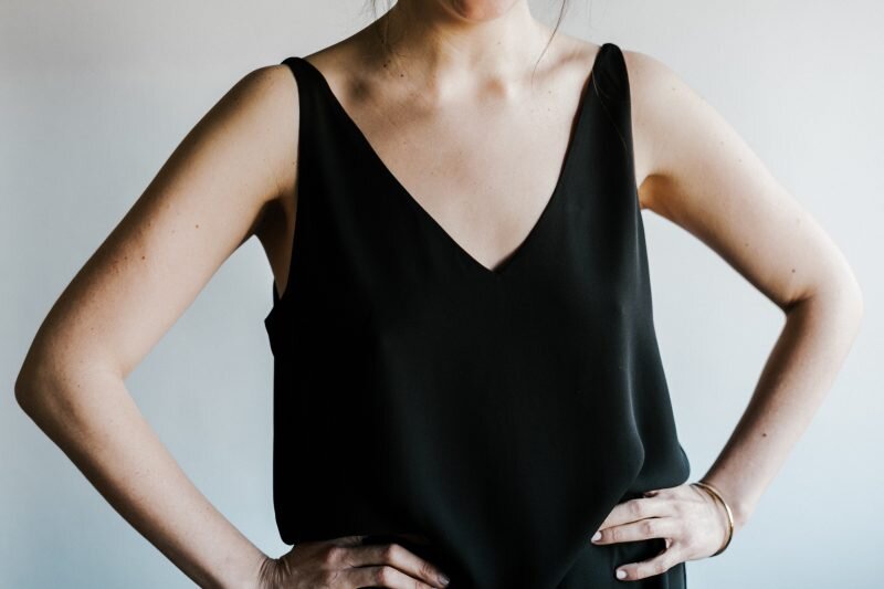 Это может быть маленькое черное платье или платье средней длины – выбирайте то, которое вам по душе. Главное, чтобы оно было максимально простым. У меня есть два платья: одно трикотажное с длинным рукавом, на зиму, другое – летнее на запах из вискозы.
