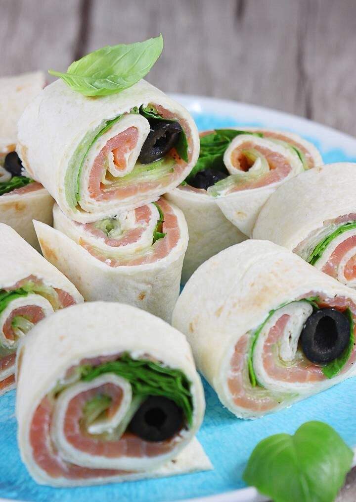 Лучшая закуска для любой вечеринки! Лаваш с лососем или рулет с копченым лососем и сливочным сыром Филадельфия. Отличная идея! Ингредиенты: · 2 лаваша · 200 г копченого лосося · 50 г сливочного сыра Филадельфия · 100 г свежего огурца · 50 г черных маслин без косточек - горсть · горсть листьев шпината или рукколы · щепотка соли и перца У меня получилось 16 рулетов шириной около 3 см Лепешка с лососем Смажьте лаваш сливочным сыром Филадельфия. Используйте любой сливочный сыр, можно взять с вкусовыми добавками, которые вы любите – укроп, паприка и т.д. На сыр выложите все приготовленные ингредиенты, а ломтики лосося можно сбрызнуть лимонным соком, если вам нравится такое сочетание. Посолите и поперчите все после укладки. Лаваш с начинкой сверните в плотный рулон так, чтобы оливки лежали вдоль рулета (см. фото) Готовые рулеты разрежьте острым ножом на порции шириной 3 см. Роллы из лаваша с лососем готовы к подаче сразу после приготовления. Или поставьте их охладиться до прихода го