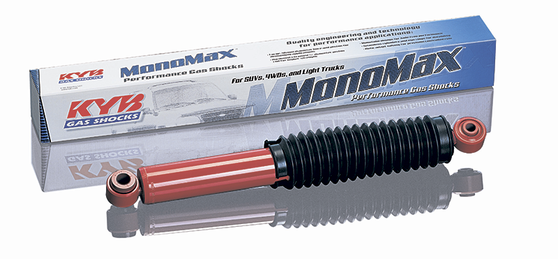 Амортизаторы MonoMax обеспечивают энергоёмкость подвески автомобиля при поездках с большой загрузкой, устраняя такие неприятные явления, как «приседание» кормы при ускорении, «клевки» передней части при торможении и докучающую многим владельцам внедорожников диагональную раскачку на «волнах» асфальта и в поворотах. KYB создало эту серию амортизаторов для автомобилей, которые испытывают большие эксплуатационные нагрузки: при перевозке тяжестей, движении по плохим дорогам и бездорожью. Однотрубная конструкция в совокупности с газом высокого давл