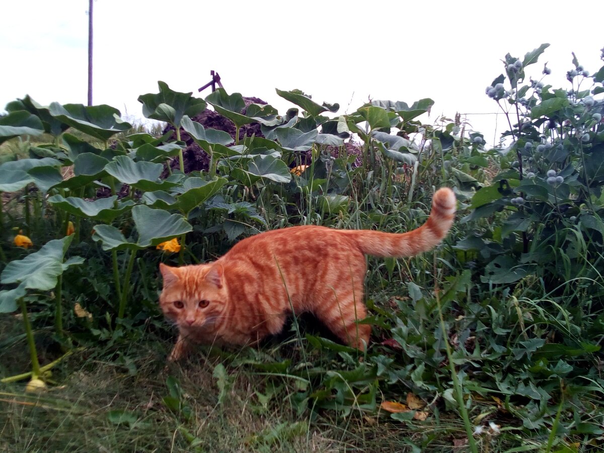 Летом наш рыжий обитает в деревне. Он там король: огромная территория, и вся его. Благо наш дом стоит на отшибе, и до самой деревни еще идти надо. Впрочем, для Персика это не расстояние. Он ходит, ему не трудно. Там ведь столько интересного! И курочки: на них охотиться нельзя, но полюбоваться-то можно? И коровы с козами: ну так приятно пахнут молоком, сил никаких нет. А если угадать к дойке, да помурчать погромче, то хозяйка этих копытных может и расщедриться. И плеснуть симпатичному рыженькому котику немножко молочка, мр-р-р-р! Собаки, опять же, бегают. Если к нашим собакам Персик привык, хоть и продолжал остерегаться, этим не глаза лучше не показываться. Они могут и не знать, насколько крутыми бывают коты. И по глупости своей, упорствуя в косности и необразованности, за котом погнаться. Ну как еще и догонят? Нет уж, лучше притвориться невидимкой и проскользнуть мимо. Персик эту науку отлично освоил. А еще там другие коты, и кошечки тоже. У нас Персик привык к большой компании, и в