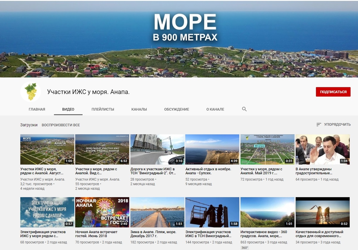 Мы рады представить вашему вниманию, наш видео канал на YouTube - Участки ИЖС у моря. Анапа. Для вас уже загружено более десятка красочных видео, не только про наши земельные участки под индивидуальное строительство, но и ролики про город-курорт Анапа с его великолепными песчаными пляжами, ласковым морем и лечебным климатом. Канал YouTube - Участки ИЖС у моря. Анапа. Ссылка: https://www.youtube.com/channel/UCzMFXBqdMYJBmNaNKy9KH5Q Самые актуальные видео ролики по земельным участкам у Черного моря рядом с Анапой. По вопросам, на счет наших участков ИЖС, звоните: 8-988-134-11-99 Подписывайтесь на канал и будьте в курсе событий!