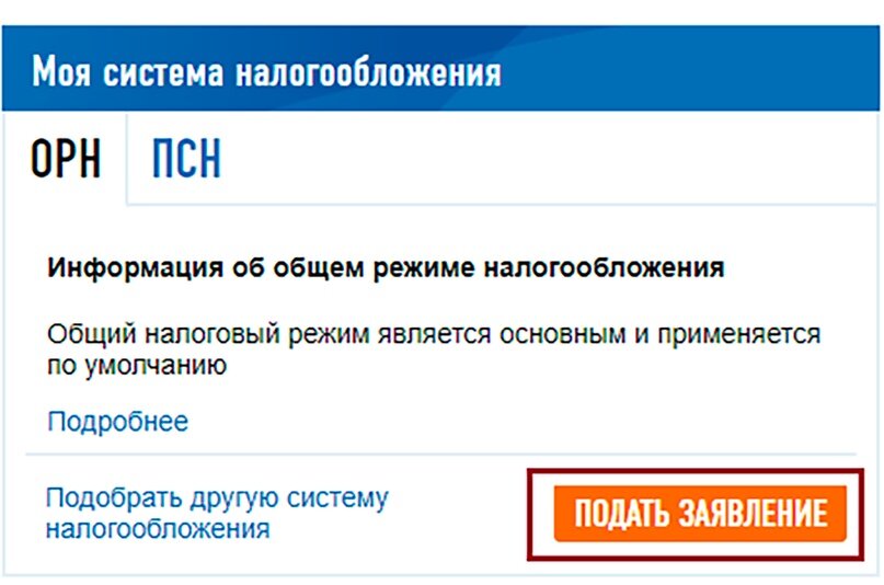 Если условия подходят и желание поменять систему осталось, выбираете в личном кабинете раздел «Моя система налогообложения», нажимаете «Подать заявление» в графе «Подобрать другую систему налогообложения»: