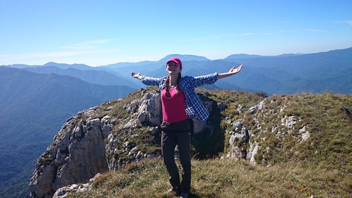 Мой второй поход состоялся уже осенью 2015г (между первой и второй - перерывчик небольшой), а точнее на следующий день после дня рождения, в сентябре) Решили мы компашкой сходить (организацией пока еще я не занималась) на какое-нибудь озеро. Выбирали что-то повыше да покрасивше и остановились на озере Чеше, которое уютно расположилось на плато Черногор ( Апшеронский район Краснодарского края). В этот раз все было серьезно – заброска на внедорожнике, свой новый рюкзак, треккинговые палки (что это такое и с чем его едят будет в отдельном посте) и даже походные штанишки))) На тот момент маршрут казался очень сложным, хотя он действительно классифицируется как маршрут непростой. Мы сбились с тропы, лезли по практически отвесному склону, заросшему травой и кустарником, немного заблудились среди карстовых воронок, девочка из группы натерла кровавые мозоли, но к вечеру добрались до озера и там разбили лагерь). Вывод – первый день выдался тяжелый)) Скажу несколько слов о самом озере и плато