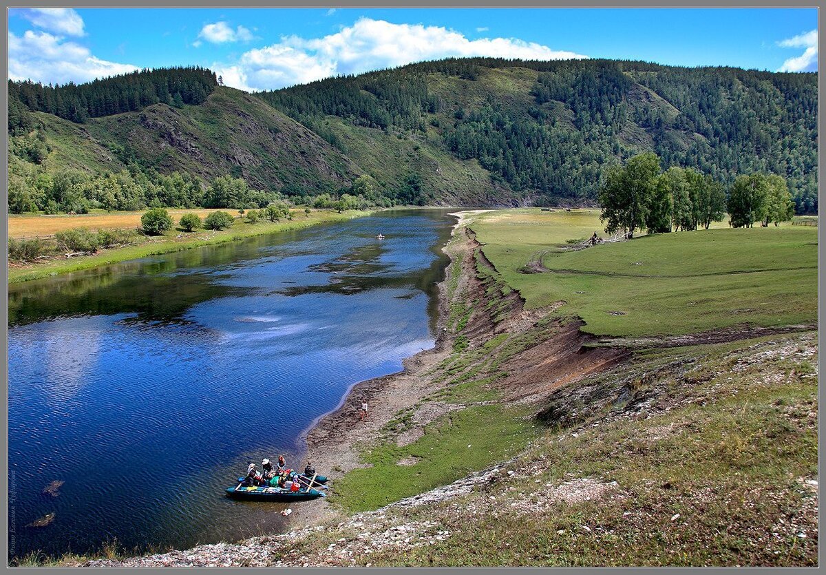 Так мы встали борт к борту мимо проплывающей лодки. Эти отчаянные ребята установили мангал прямо в лодке и жарили шашлыки. Они никуда не торопились, как и мы, поэтому мы спокойно шли по течению реки попивая горячий чай)