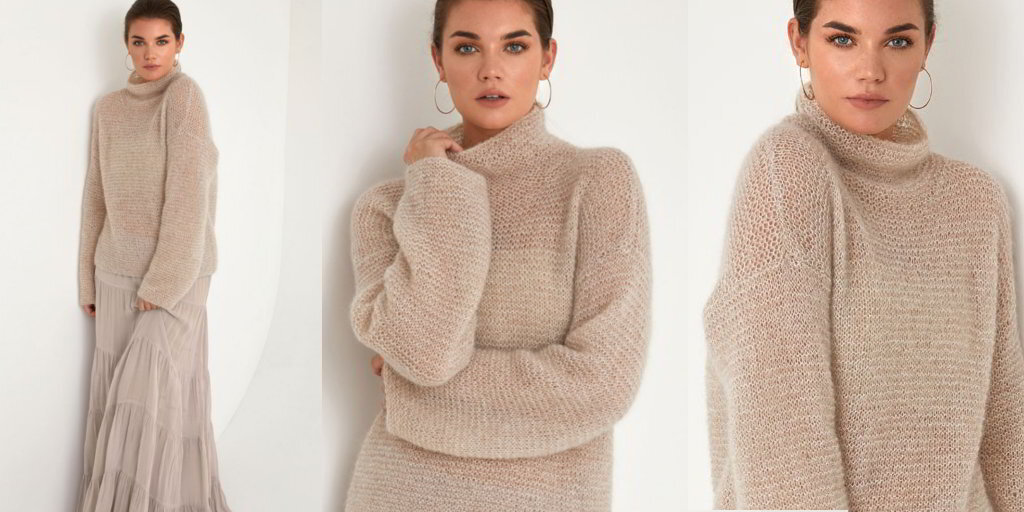 Стильный женский свитер вязаный спицами из мохера платочной вязкой. Модный свитер для женщин из новой коллекции английского дизайнера Ким Харгривз на весну 2019 выполнен в пастельной гамме из нежного мохера в стильном свободном фасоне. С помощью подобного свитера легко создать романтичный образ, одев его с платьем или пышной юбкой, а также использовать в повседневном стиле кежуал с брюками любого фасона. Подробнее