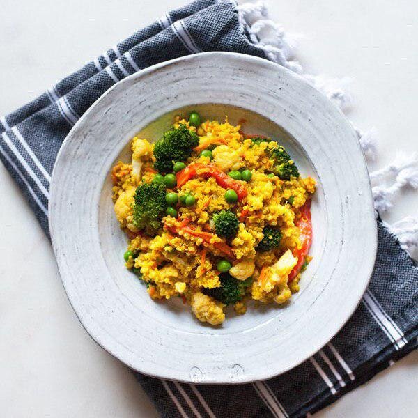 У нас снова киноа. Вы можете заменять киноа на любую другую кашу, если киноа вам найти не удаётся. (хоть её и продают во многих супермаркетах) Рис - отличная альтернатива киноа. Так что не закрывайте в следующий раз рецепт, если увидели там редкий ингредиент или который вам сложно найти или не по бюджету. Вполне нормально брать за основу один рецепт и заменять часть ингредиентов на свои. Я всегда вам говорю, экспериментируйте и познавайте новые вкусы. Нам понадобится: Готовим! 1. Киноа выкладываем в кастрюлю, наливаем молоко, воду, добавляем карри, куркуму и перец, доводим до кипения. Уменьшаем огонь на минимум, накрываем крышкой и тушим 15 минут. Выключаем и даём киноа настояться 5-10 минут. 2. На сковороде разогреваем масло на среднем огне и обжариваем лук, чеснок и имбирь в течении 5 минут. Добавляем овощи, соевый соус, уксус. Готовим под крышкой 5-10 минут, постоянно помешивая. Можно добавить немного воды, чтобы предотвратить пригорание. 3. Перекладываем овощи в киноа, перемешивае