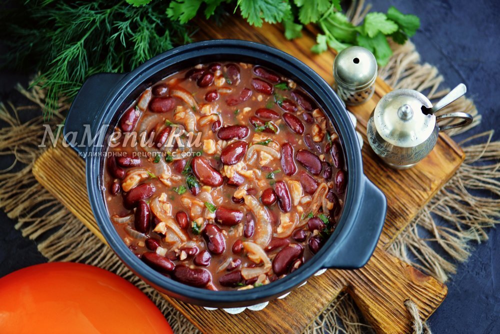 Необходимые продукты: - фасоль красная консервированная в с\с - 380 г, - лук репчатый - 1 шт., - чеснок - 2-3 зубчика, - грецкие орехи - 50 г, - масло оливковое - 1-2 ст.л., - перец жгучий - по вкусу, - соль - по вкусу, - перец ч.м. - по вкусу, - уксус белый винный - 1 ст.л., - кинза - несколько веточек, - томатная паста или аджика - 2-3 ст.л. 💧Слейте воду с фасоли в отдельную посуду 🌻Разогрейте в сковороде растительное масло, нарежьте лук полукольцами, обжарьте, добавьте мелко нарубленные орехи и чеснок 🍥Добавляем фасоль, соль, перец и жгучий красный перец, перемешиваем 🍅Влить воду от фасоли, добавить томатную пасту или аджику и уксус, тушим на тихом огне 10 мин. 🌱Кинзу мелко рубим, добавляем в конце https://namenu.ru/10548/Lobio_iz_konservirovannoj_krasnoj_fasoli/