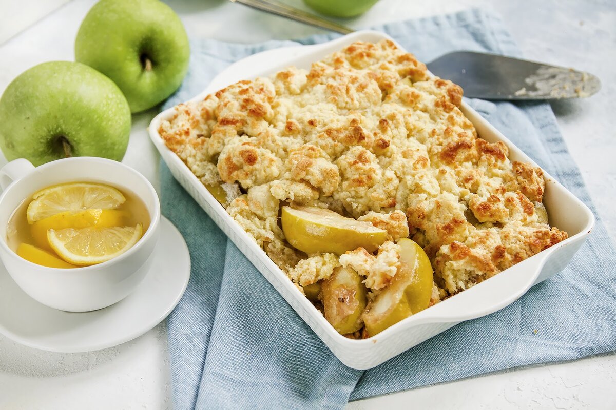 Коблер меньше всего похож на пирог. На начинке из свежих яблок лежат отдельные клецки из мягкого теста с добавлением сливок или молока. Коблер всегда подается теплым или даже горячим. Если в США он делается исключительно с фруктами и ягодами, то у себя на родине, в Англии, коблеры готовятся, в основном, с мясом. Это может быть говядина или индейка, чаще всего с грибами, луком и пряными травами. Мука 160 г Сыр Чеддер 100 г Сахар коричневый 80 г Молоко 50 мл Сливочное масло 80 г Грецкий орех 30 г Изюм 30 г Разрыхлитель 1 уп. Яблоки 500 г Форма алюминиевая 1 шт. Корица 0,5 ч.л. Время приготовления 35-40 мин.