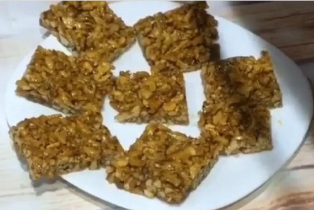 Грузинская кухня очень интересная, и самая старинная. Готовят здесь вкусные сладости "козинаки" (гозинаки) — это конфеты с медом и орехами. Предлагаю приготовить эти вкусные и полезные конфеты. Их приготовить очень просто. Ингредиенты: 400 грамм грецких орехов 300 грамм мёда, лучше жидкого 1 пакетик сахарной пудры подсолнечное масло Алгоритм приготовления: 400 грамм грецких орехов замочить в воде на час. Орехи станут чище и мягче. Затем орехи порубить мелко ножом. Берём сковороду. Ставим на медленный огонь. Выкладываем нарезанные грецкие орехи. Обжариваем минут 5. Заливаем затем жидким медом. Высыпаем пакетик сахарной пудры. Обжариваем и помешиваем до полного растворения мёда. Минут 15. Смотрите, чтобы мед превратился в карамель. Берём форму. Накрываем бумагой. Смазываем бумагу подсолнечным маслом. Выкладываем на неё орехи с медом. Затем разрезаем на прямоугольные полоски. А потом на искосок ещё на ромбы. Оставить на два часа, чтобы масса затвердела. Эту затвердевшую