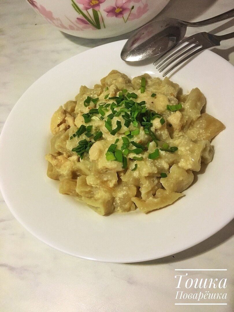 Всем доброго времени суток! Готовить еду - это для меня целое искусство. Нравится состряпать что-то новое, придумывать обновлённые рецепты и видоизменять. В моей голове столько идей - «только успевай продукты покупать!» :) И как раз сегодня будет один из видоизменённых блюд. Я назвала это блюдо «Галушки под нежным мясным соусом». Прошу сильно не критиковать. Получается безумно вкусное блюдо, ну пальчики оближешь. :) В приготовлении рецепт очень прост. Заранее спасибо большое, что подписались на канал и поставили лайк! Возвращайтесь на канал и делитесь рецептами -ПОДПИСАТЬСЯ - Для этого нам понадобится: Для галушек: - Мука - сколько возьмёт тесто - Яйцо - 1 шт - Вода - 100 мл - Соль - по вкусу -Масло сливочное - 50 гр - Зелёный лук Для соуса: - Куриная грудка - 200 гр - Лук - 1 шт - Молоко - 200 мл - Сыр - 100 гр - Соль - по вкусу Как приготовить: Весь процесс приготовления можно разделить на 2 этапа. 1.1 Для начала замеси