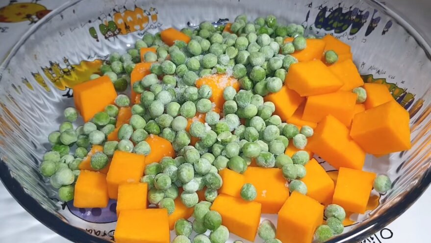 Невероятно вкусный и оооочень удобный пошаговый рецепт приготовления постного ужина или обеда. Это блюдо - просто кладезь витаминов и полезных микроэлементов. Тем не менее, оно очень простое и оригинальное в приготовлении! Достаточно только отправить все продукты в духовку и немного подождать! Ингредиенты: что понадобится? Тыква - 300 грамм. Зеленый горошек (замороженный) - 200 грамм. Крупа Булгур - 200 грамм. Соль, перец - по вкусу. Итальянские травы - 1 чайная ложка. Оливковое масло - 3-4 столовые ложки. Пошаговый рецепт: с фото! Для начала нарезаем тыкву крупным кубиком, далее отправляем в посуду зелёный горошек. Далее засыпаем крупу, солим, перчим, добавляем итальянские травы. Теперь добавляем оливковое масло. И заливаем получившуюся смесь водой таким образом, чтобы она покрыла все ингредиенты. Это примерно 500-600 миллилитров. Ставим в духовку, разогретую до 200 градусов. Время приготовления примерно 40-45 минут. Вот такая неимоверная красота получается: Приятного аппетита!