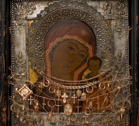 Иногда, зайдя в православную церковь, можно увидеть иконы Богородицы, обвешанные различными (чаще всего золотыми) ювелирными украшениями. Откуда они взялись - догадаться несложно. Очевидно, что люди приносят свое самое ценное в благодарность за помощь. Откуда же пошла данная традиция? Доподлинно этого уже не узнать, то предположительно родоначальником является Иоанн Дамаскин. Этот святой жил в в Византии в VIII веке. Пострадав от ложного доноса, он был лишен руки по приказу императора. Несправедливо обвиненный Иоанн молил Богородицу о чуде исцеления. И Богородица помогла . Отрубленная рука приросла обратно (привет тебе, Джейми Ланистер) . В знак этого Иоанн сделал еще одну руку из серебра и положил ее перед иконой. Так возникло знаменитое изображение Троеручницы. Подобная традиция также есть в Греции, где у церквей продаются специальные таблички с изображением того, о чем люди молились. Также есть предположение, что эта традиция пошла со времен язычества и жертвоприношений. Посл
