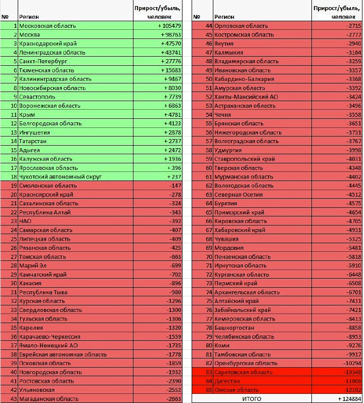 Ежедневно огромный штат секретной подземной лаборатории Ebunko News отслеживает колебания энергии пиздеца по всем локациям Сверхдержавы. Где-то всплеск или вспышка, и бедолагу уже расчленяют в тёмной подворотне, где-то затишье, и местные аборигены более менее спокойно доживают этот день. Неоднократно аналитика показывала, что самый лютый психоделический пиздец творится в столице необъяснимого - городе Омске. На втором месте по уровню психоделического пиздеца испокон веков была Саратовская область. А теперь, товарищи, давайте посмотрим на официальную статистику от братишек из Росстата, которая показывает динамику миграционных изменений субъектов РФ по абсолютным показателям, то есть, сколько народа приехало/уехало из локации. Больше всего людей в полном ужасе съебались из Омской области, на третьем месте по уехавшим Саратовская область. Как можно заметить, из Дагестана тоже идёт активное перенаселение братишек в центр. В общем псевдонаучная лаборатория в очередной раз подтверждает свой
